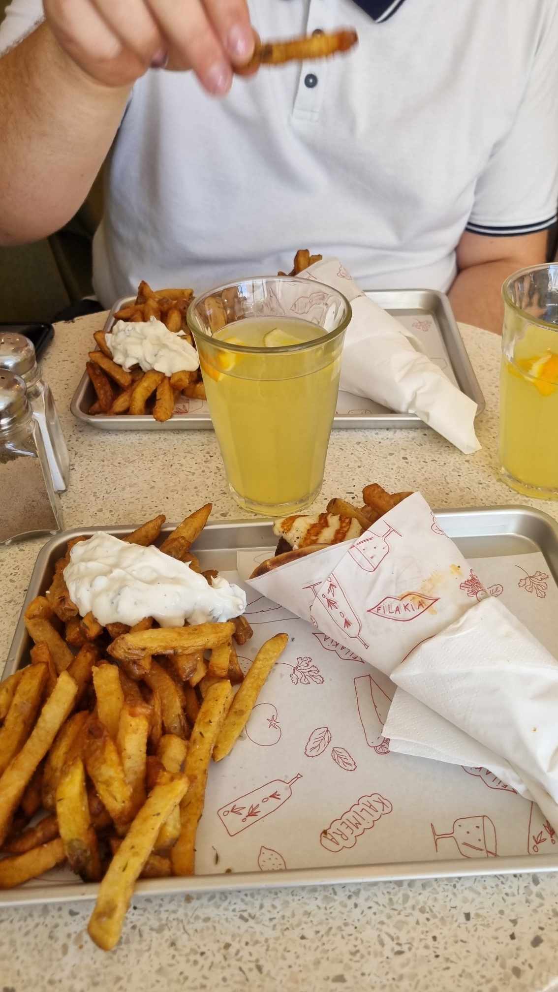 Chaque bouchée nous fait retourner dans les Cyclades! Le souvlaki est bon et copieux. Les frites sont cuites deux fois, rien à envier aux belges ! Et la sauce au yaourt grec est crémeuse comme tout ! ΕΥΧΑΡΙΣΤΩ!!!