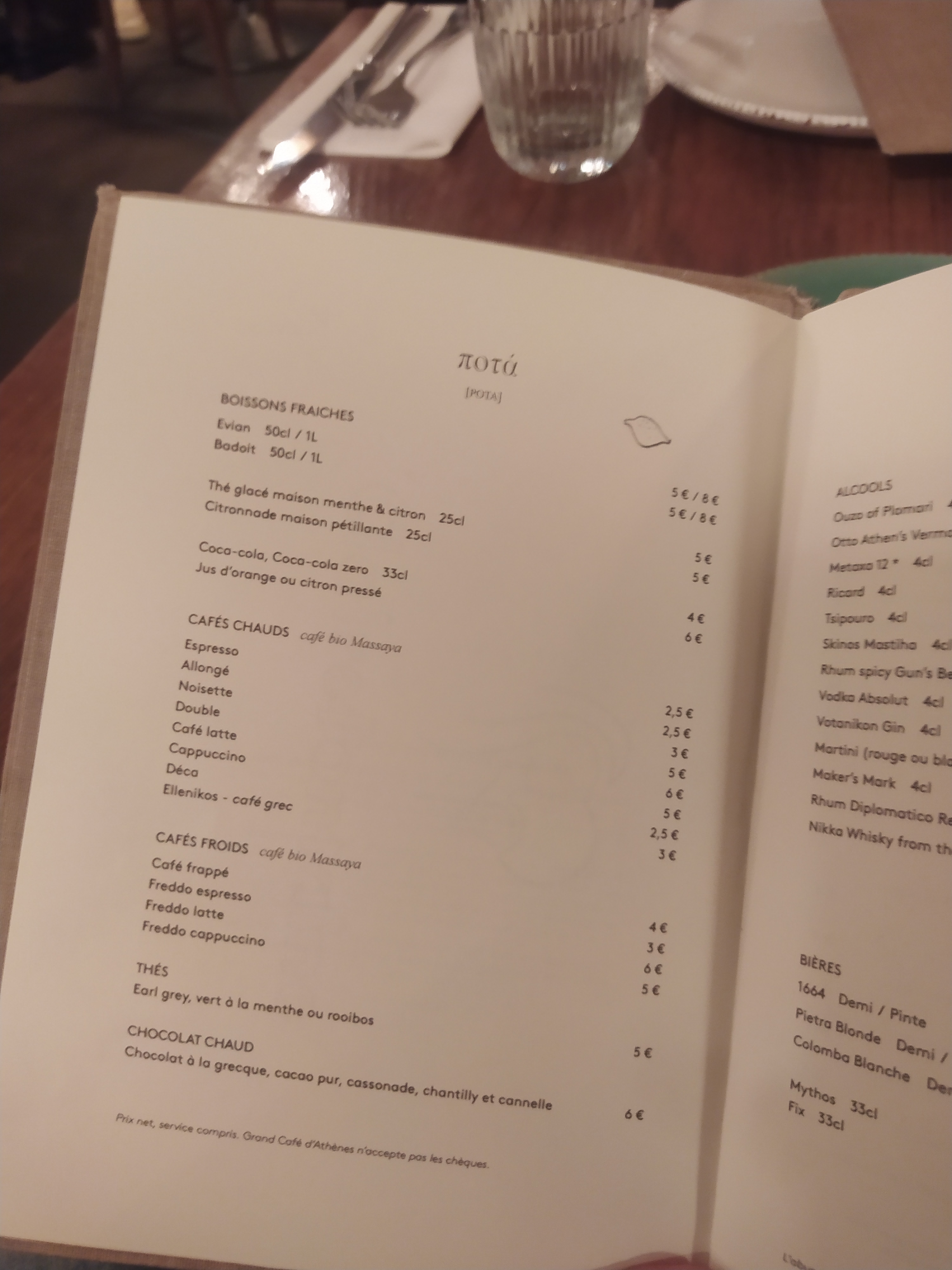 Franchement incroyable ! Repas étudiant à 10 euros très bon… frites maison délicieuse. Rien a redire on se croirait réellement à Athènes. Franchement bravo
