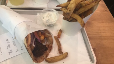 Cela me rappelle la bonne pita Grecque avec des frites délicieuses...dommage il n'y avait pas de salade grecque. Il manquait un peu de musique grecque également. L'accueil était très sympathique avec une bonne présentation des produits par la serveuse. J'y retournerai !