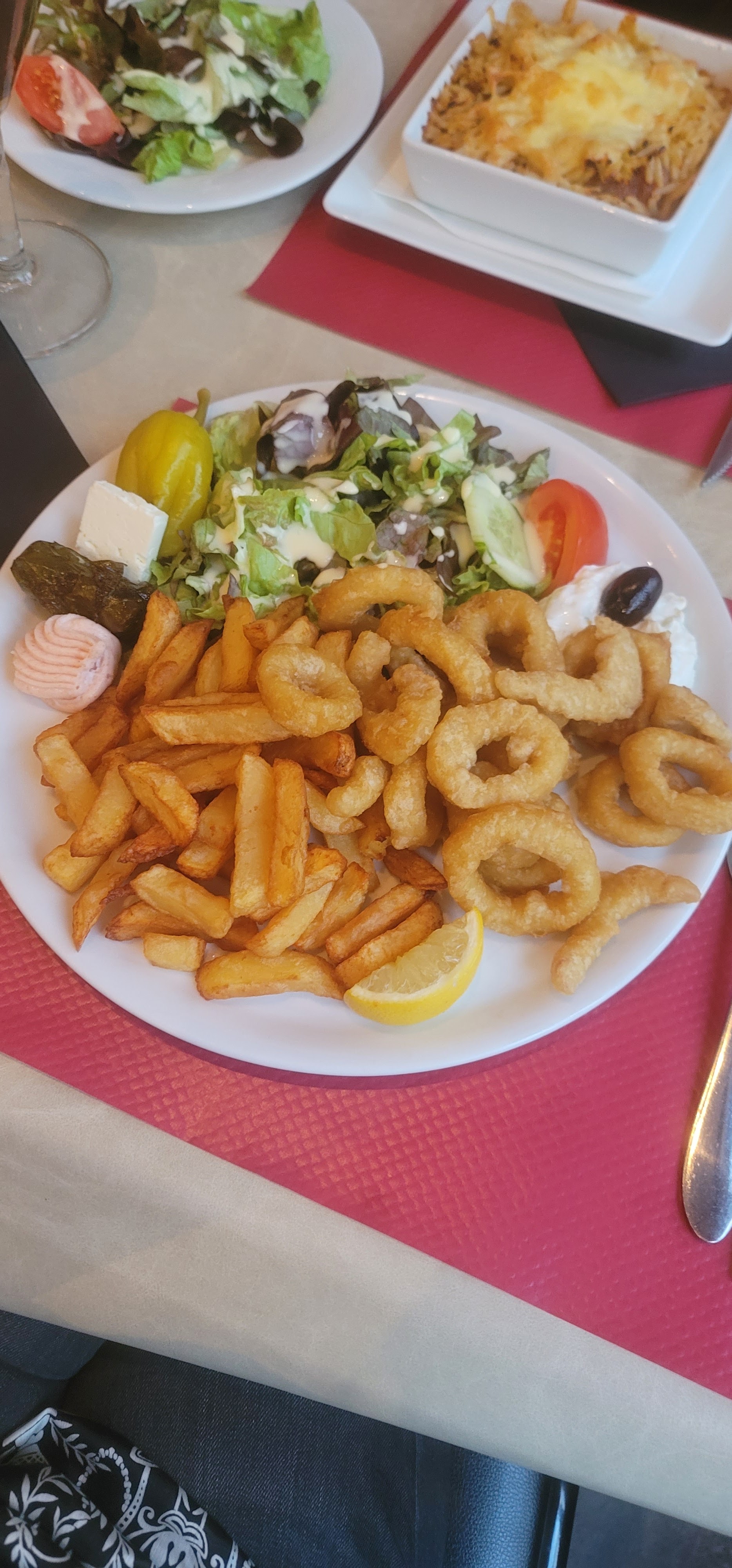 Nous sommes très déçus. On a commandé 4 plaka viande et 2 plaka calamar, les quantités laissent à désirer, une quantité de viande médiocre ainsi que les accompagnements ce plat ne mérite clairement pas les 13 euros sachant que nous avions l’habitude de commander la même chose et pourtant les quantités étaient meilleures que celles de ce soir.