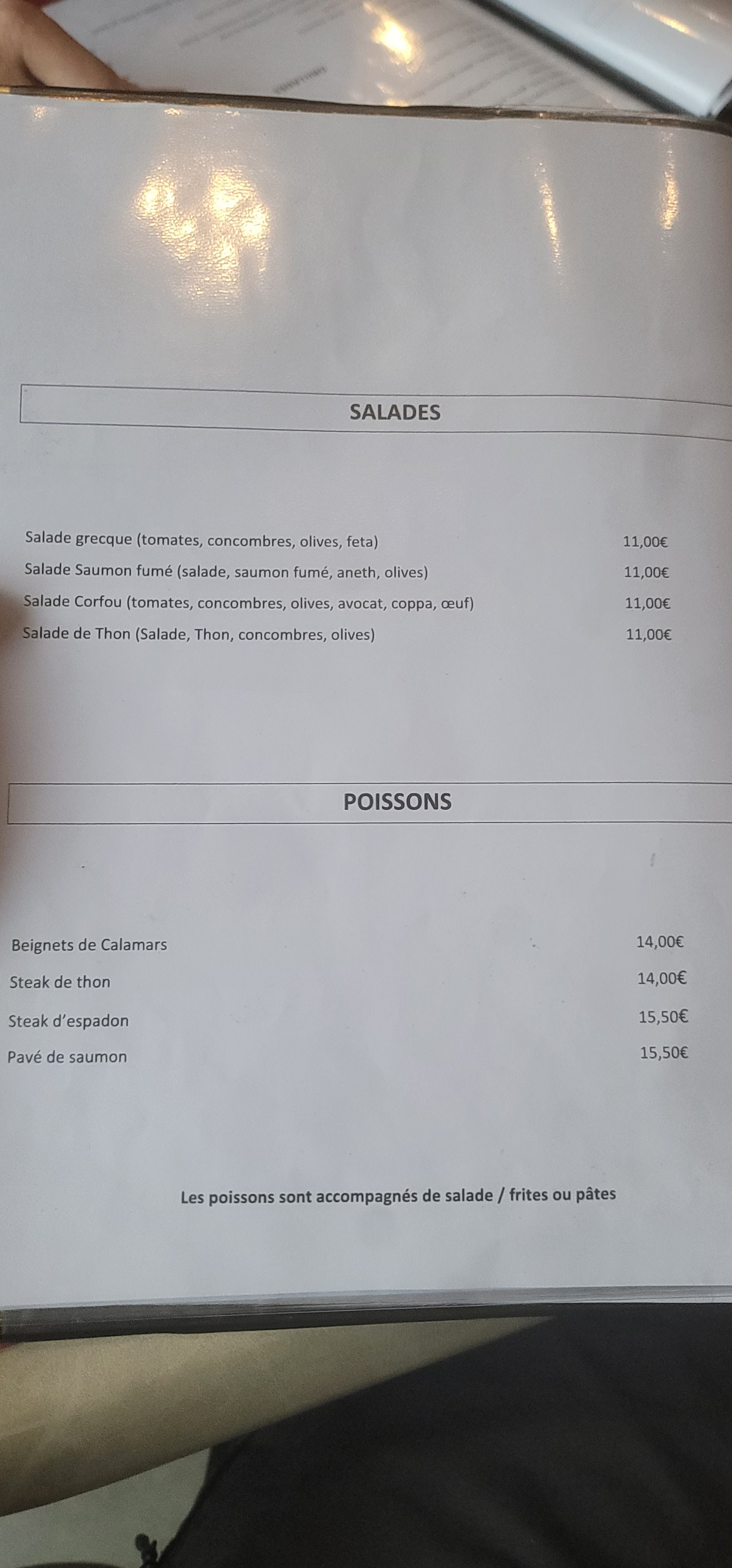 Salade à la grecque zero. Tomades limite vertes, feta vraiment pas bonne idem olives et rouleaux feuille de vigne. Pain simple baguette et le vin blanc une horreur nous ne l avons pas consommé. Pates froides... Dommage car le personnel et la terrasse sont sympas. En plus 3 plats sur carte non disponibles. Pourquoi les afficher ?
