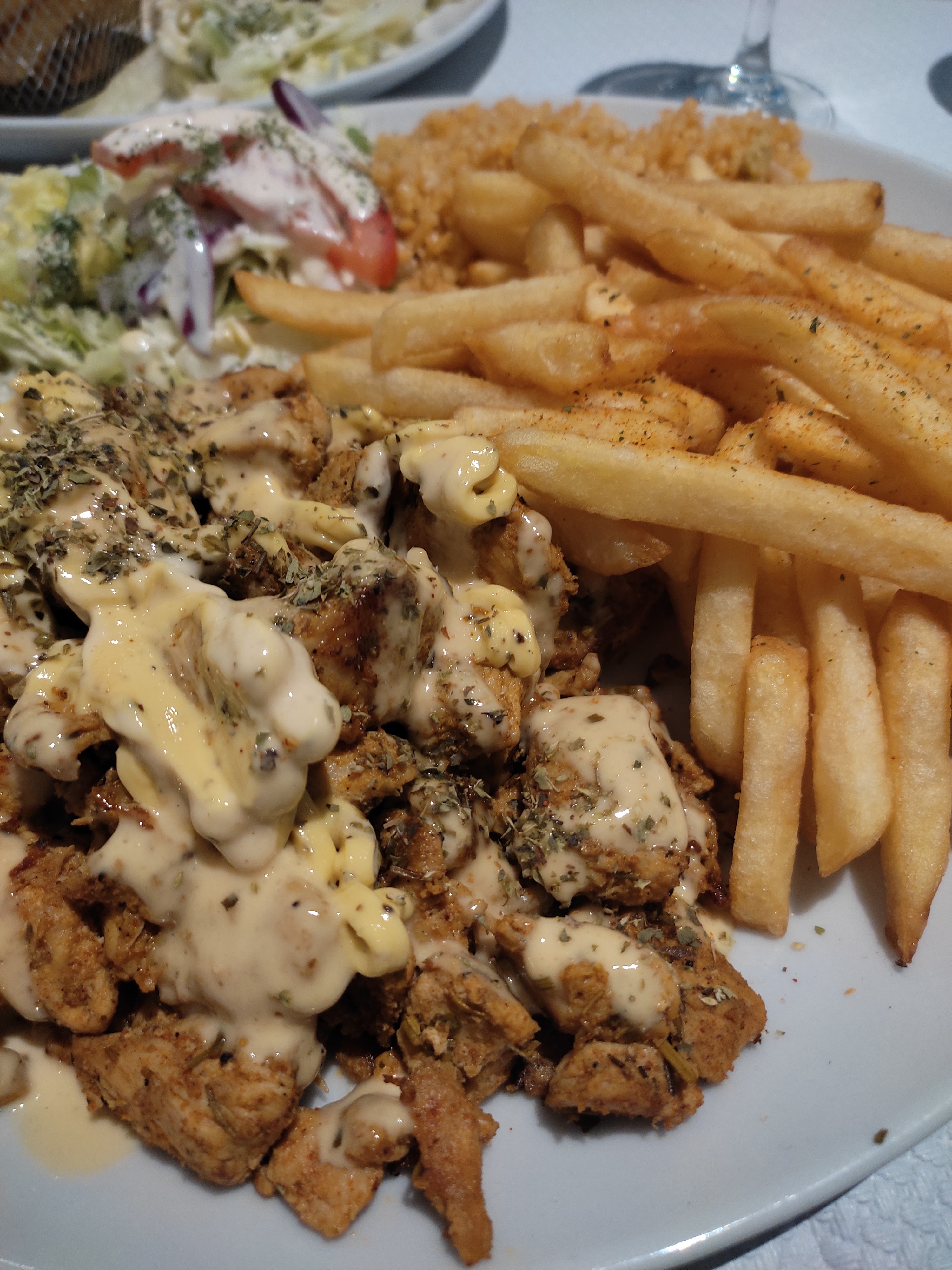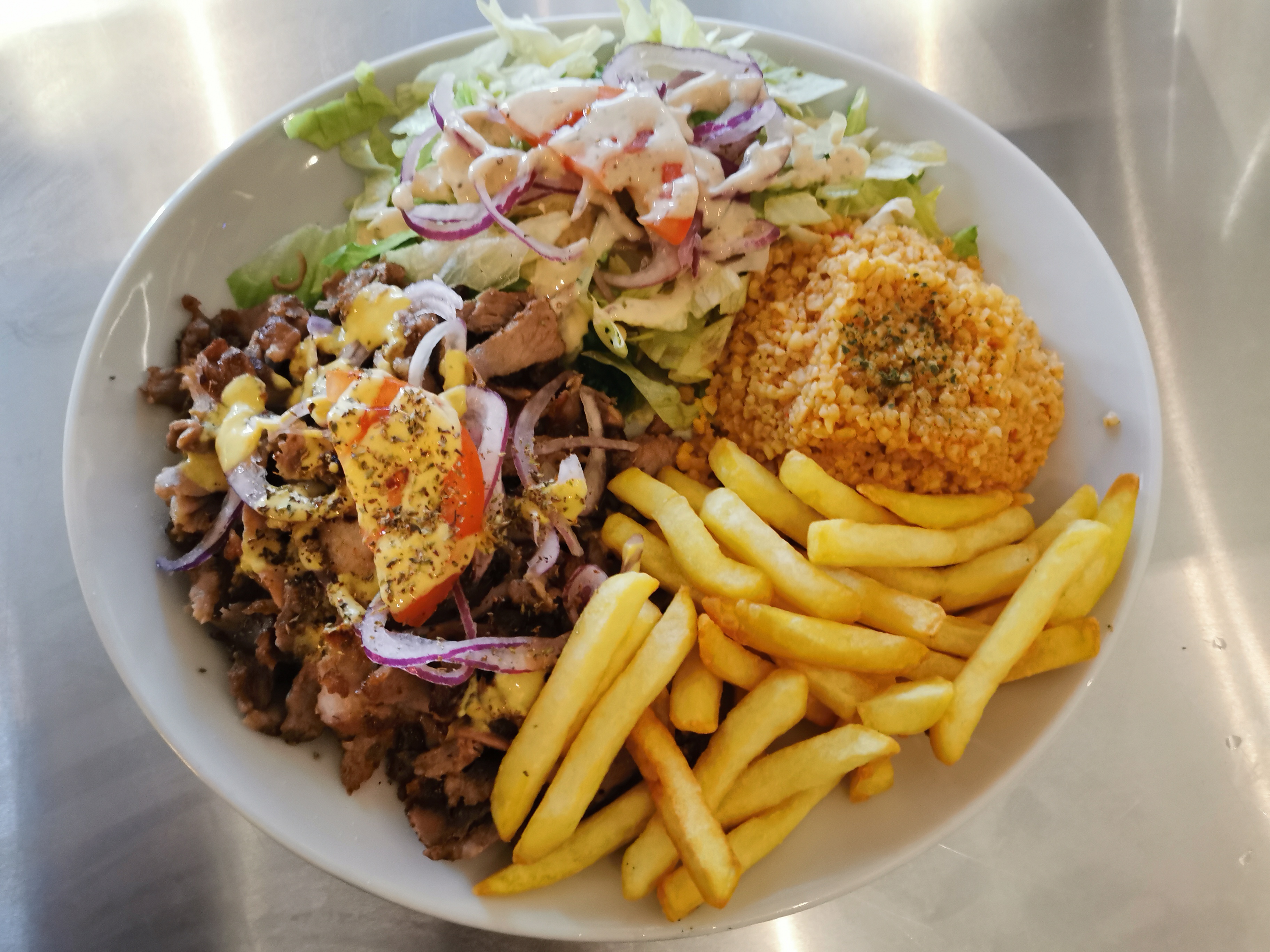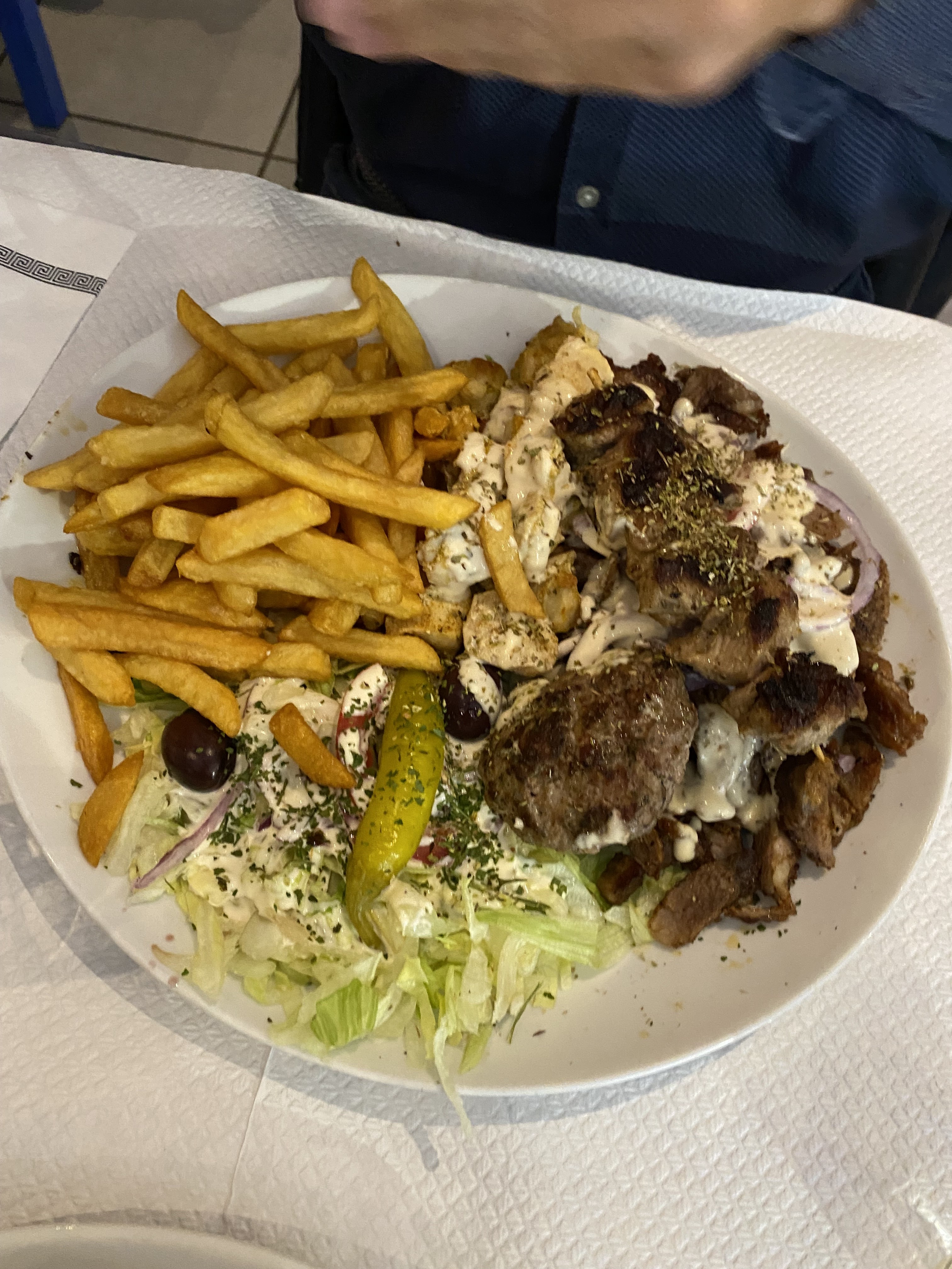Très bon rapport qualité prix. Tres copieux. Déjà été deux fois et retournerai. Petit bémol les frites fraiches seraient bienvenues mais en meme temps il vaut mieux manger grec et donc les pâtes.