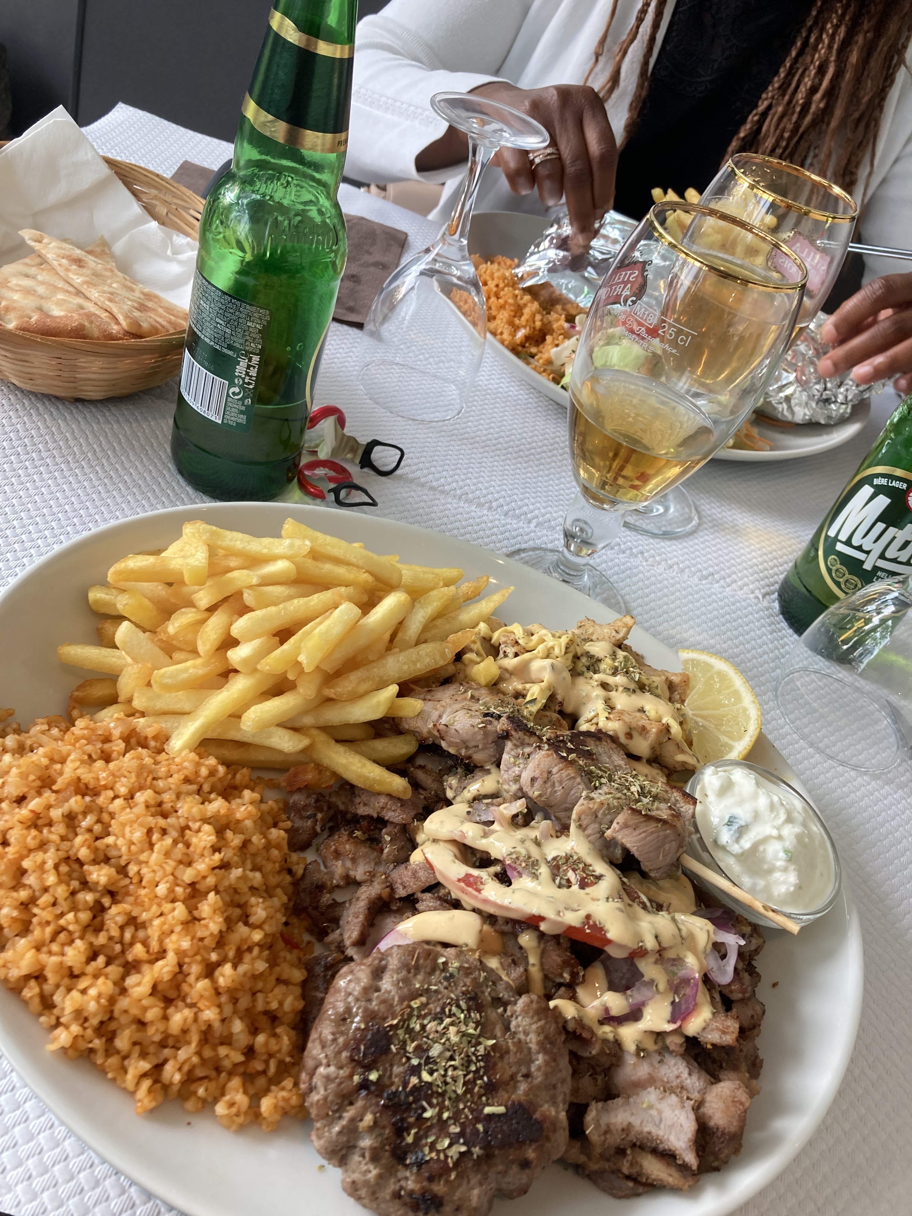 Super soirée passée au Tavernaki. Nous avons été très bien accueillis. Les assiettes étaient bien garnies. Tout était délicieux ! A peine la viande gyros servie, son parfum m'a rappelé mes voyages en Grèce. J'avais l'impression d'y être à nouveau. Il va falloir que je teste le service de vente à emporter pour ramener de cette excellente viande grillée chez moi !