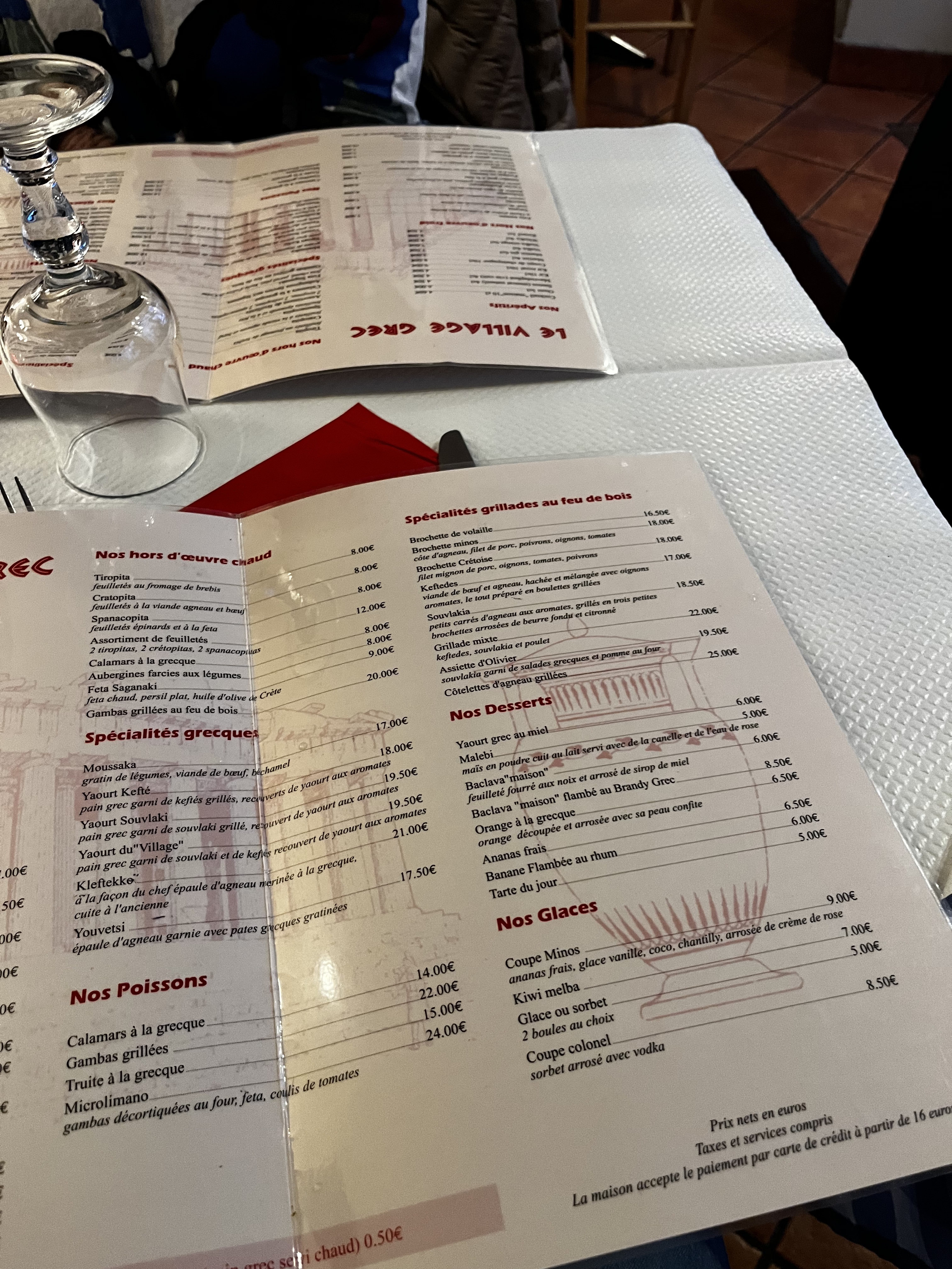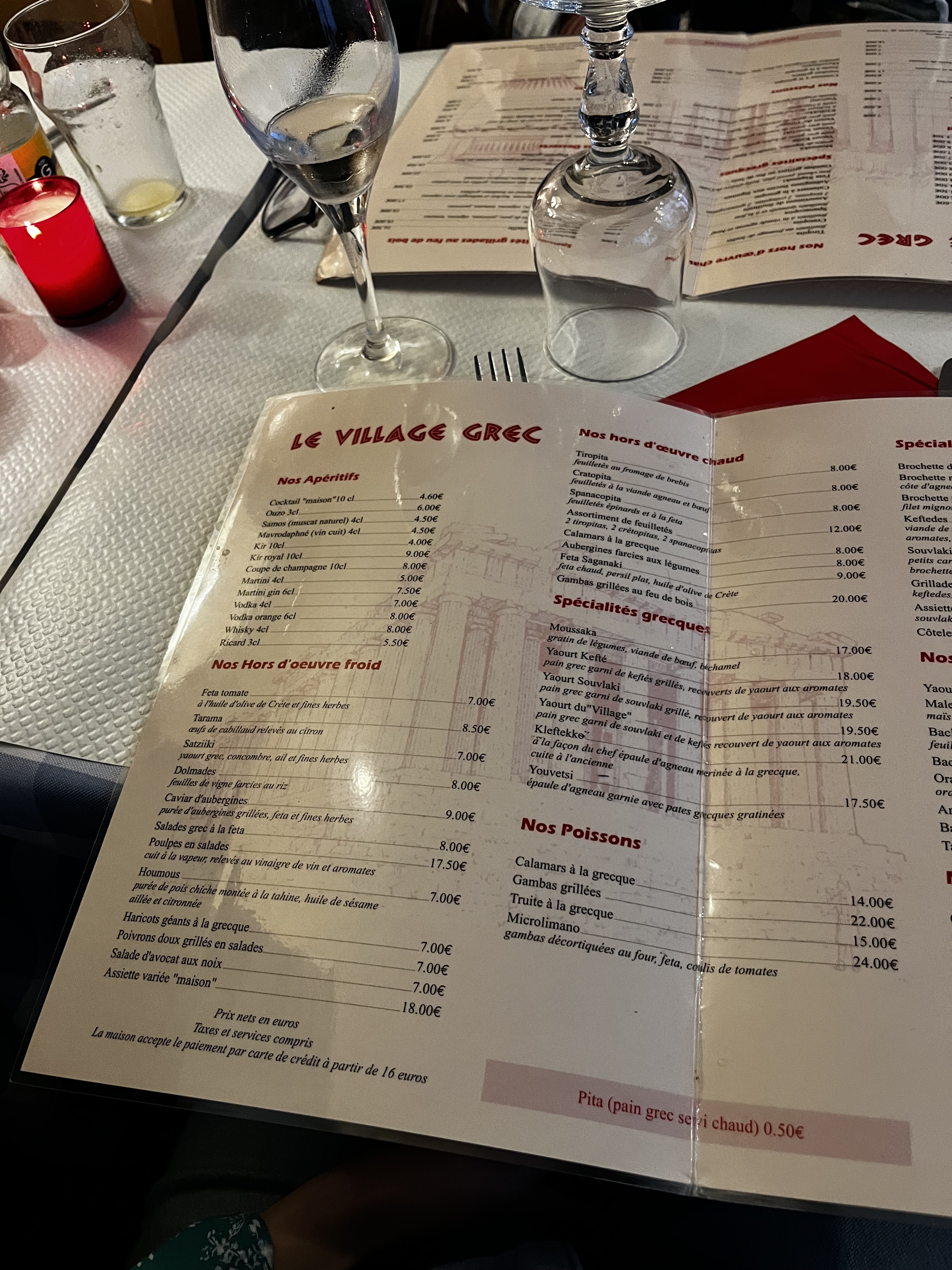 Superbe découverte, le gérant est d'une gentillesse qui n'a sont égal que la cuisine qui est servie, les plats essayé sont tous aussi bon les uns que les autres avec une petite préférence pour l'agneau, je vous conseille ce restaurent sans hésitation. Ah oui j'ai goûté un petit vin blanc grec dont le nom m'échappe totalement mais je vous le conseille autant que l'agneau, il se marie parfaitement bien avec la cuisine.