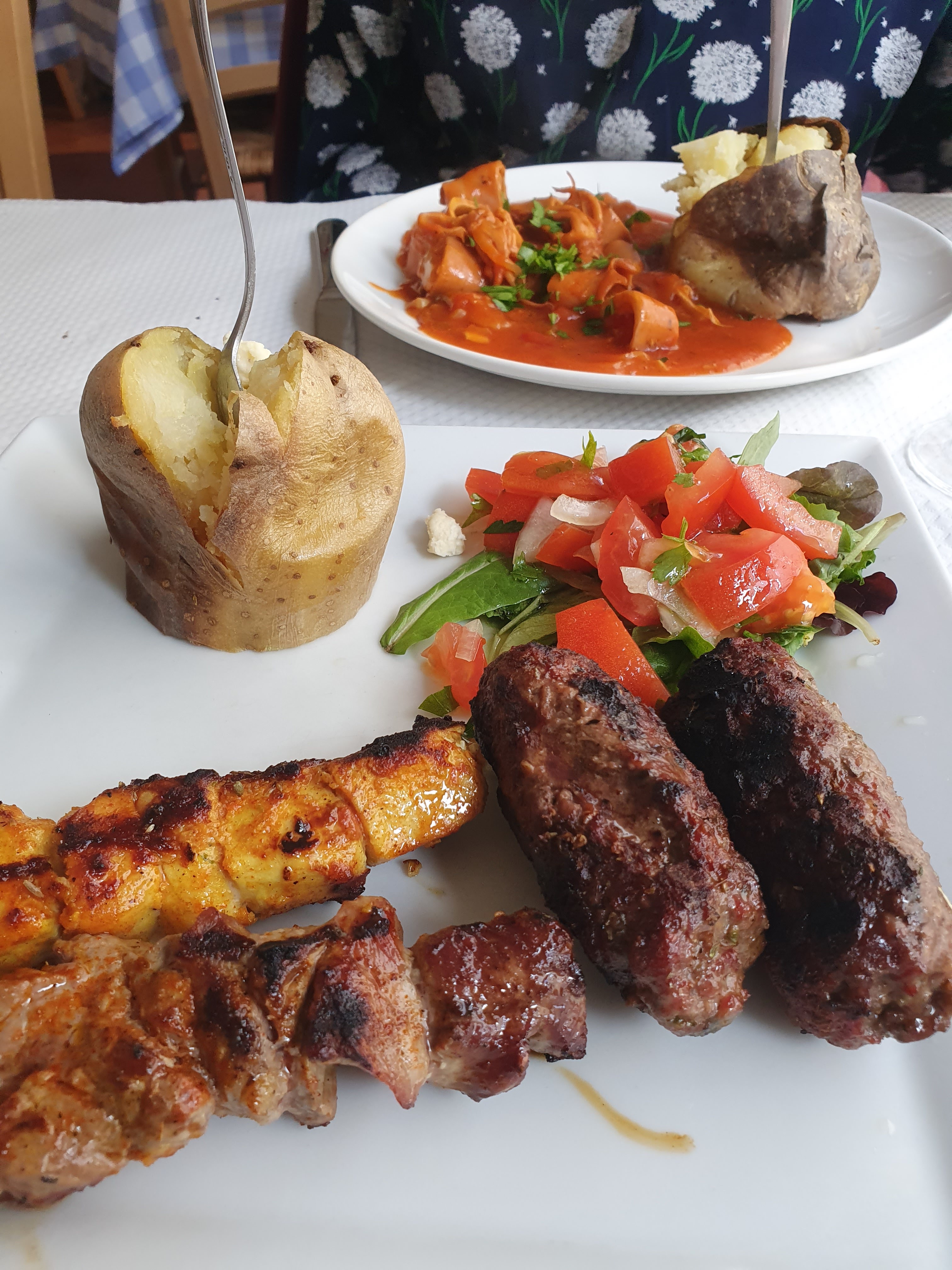 Très bon accueil, belle déco sur fond de music grec, assiettes généreuses et grillades au top,
