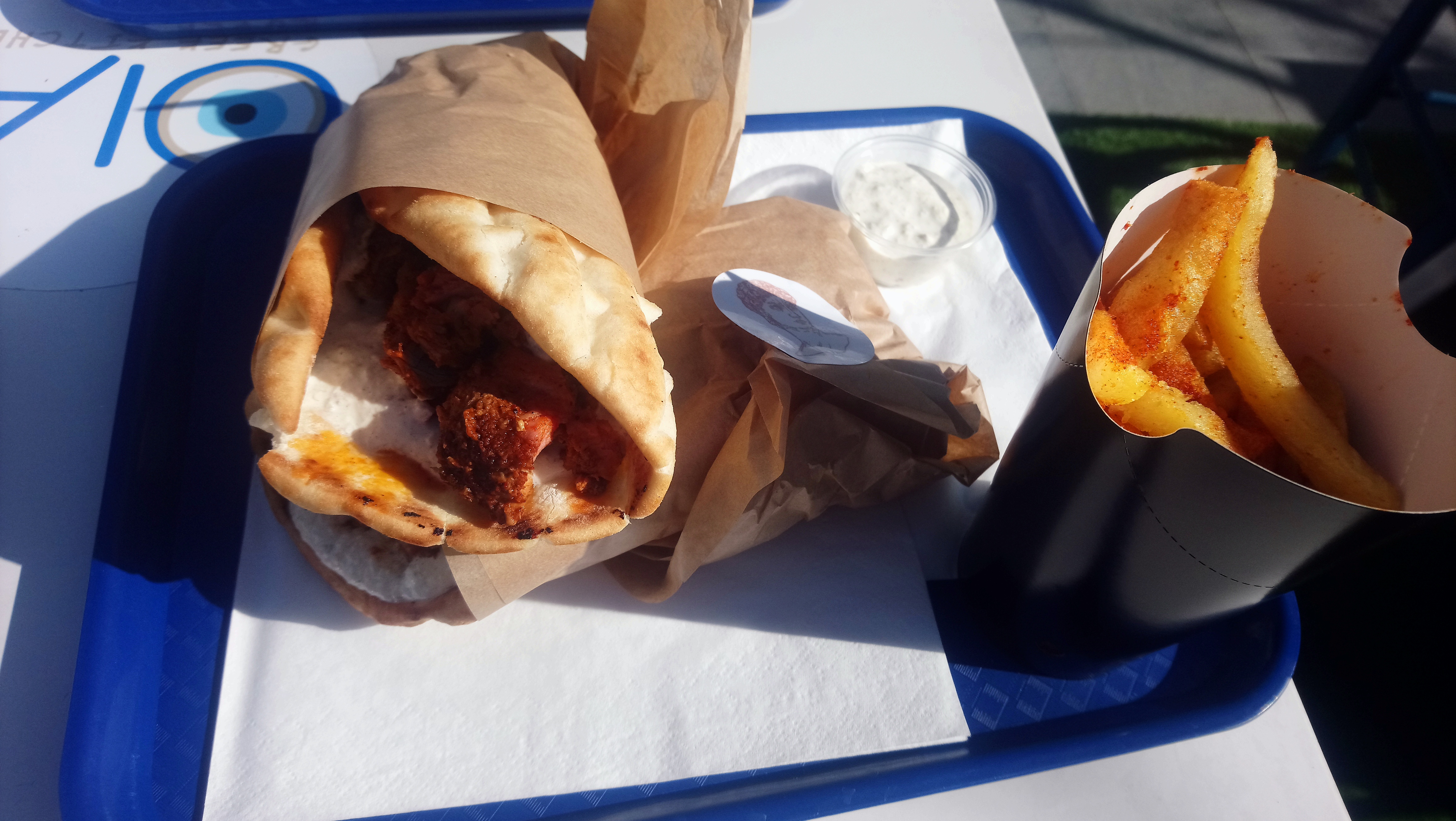 De l'extérieur cela donne très envie, surtout si vous avez eu la chance de manger en Grèce. Malheureusement grosse déception Pain froid poulet tiède, sandwich fade sans goût. 12 eur avec frites et boissons, passez votre chemin. A revoir les recettes et conception des sandwichs avec des produits de qualités et surtout du GOUT s'il souhaite durer dans le temps.