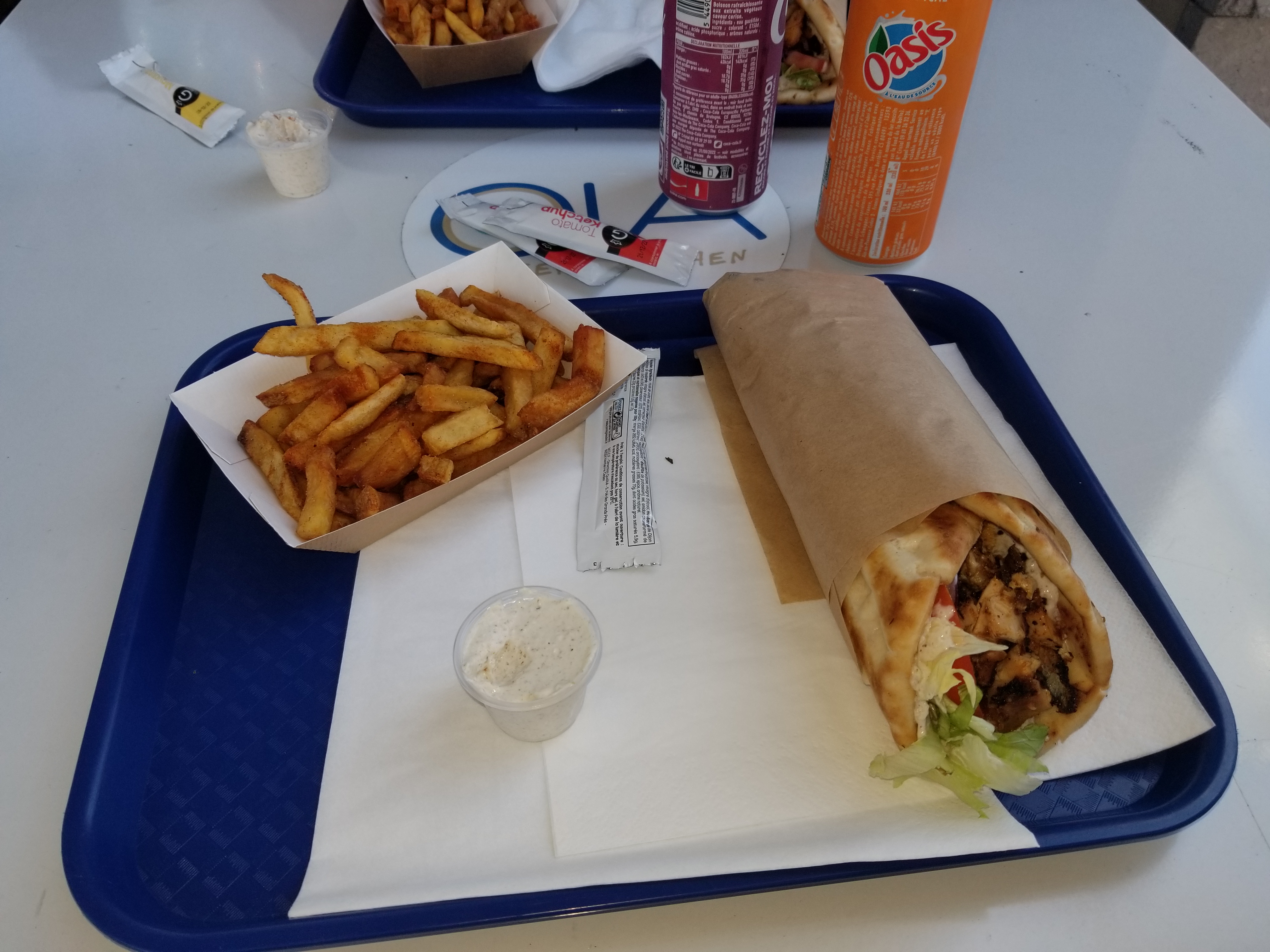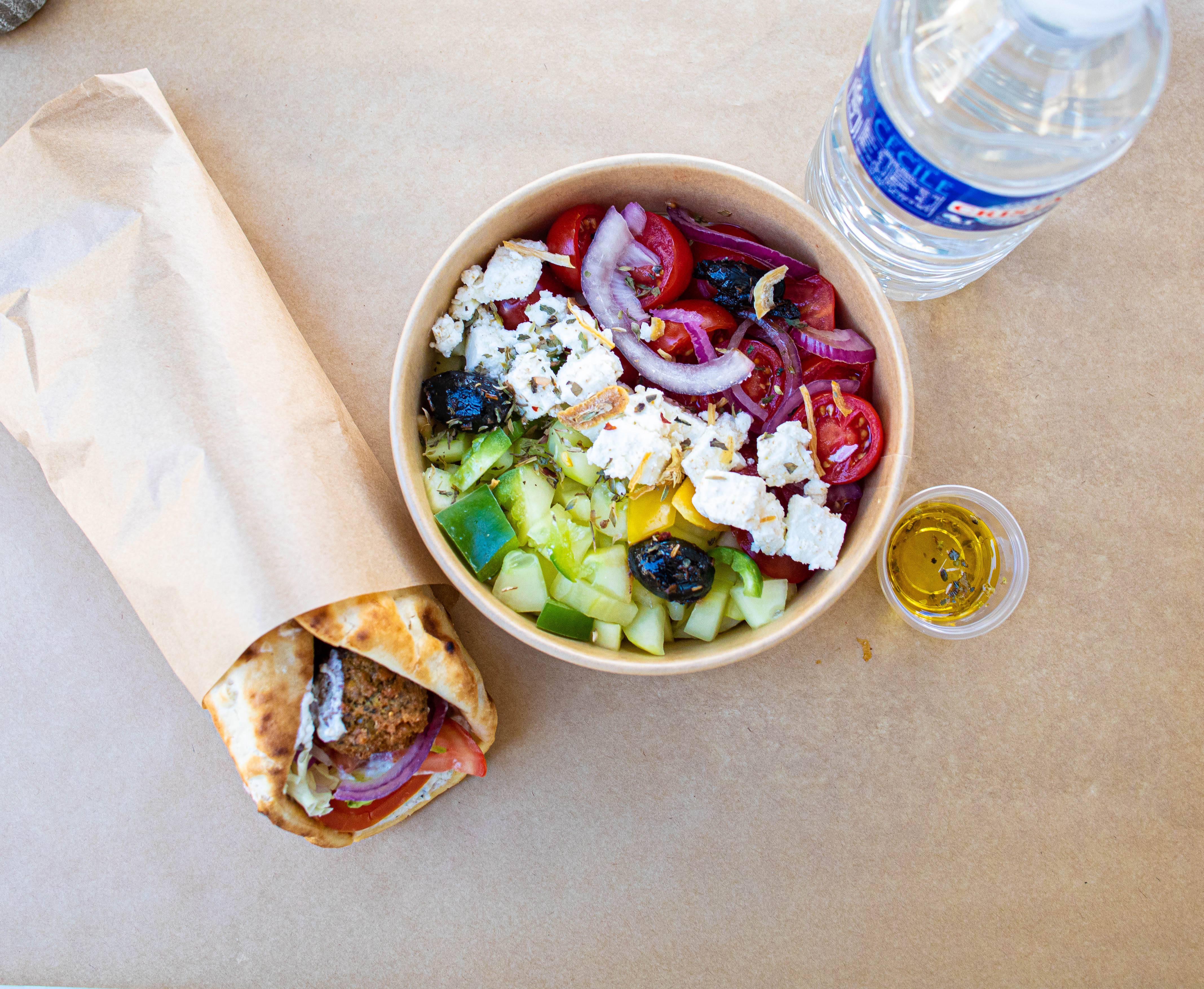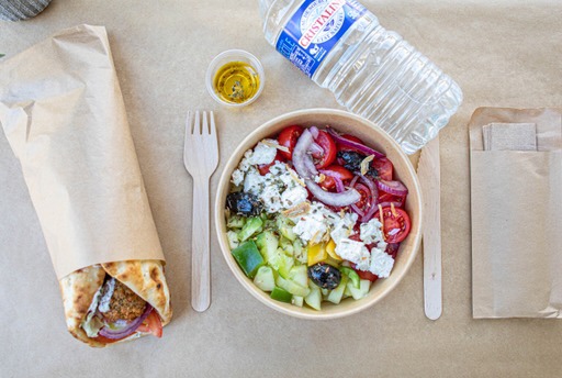 Nous avons apprécié manger de nouvelles saveurs et avons choisi de goûter les gyros (poulet pour mon conjoint et falafel pour moi) ainsi que des frites et une petite salade grecque en accompagnement. Les produits sont frais, le rapport qualité prix est correct. Je recommande !