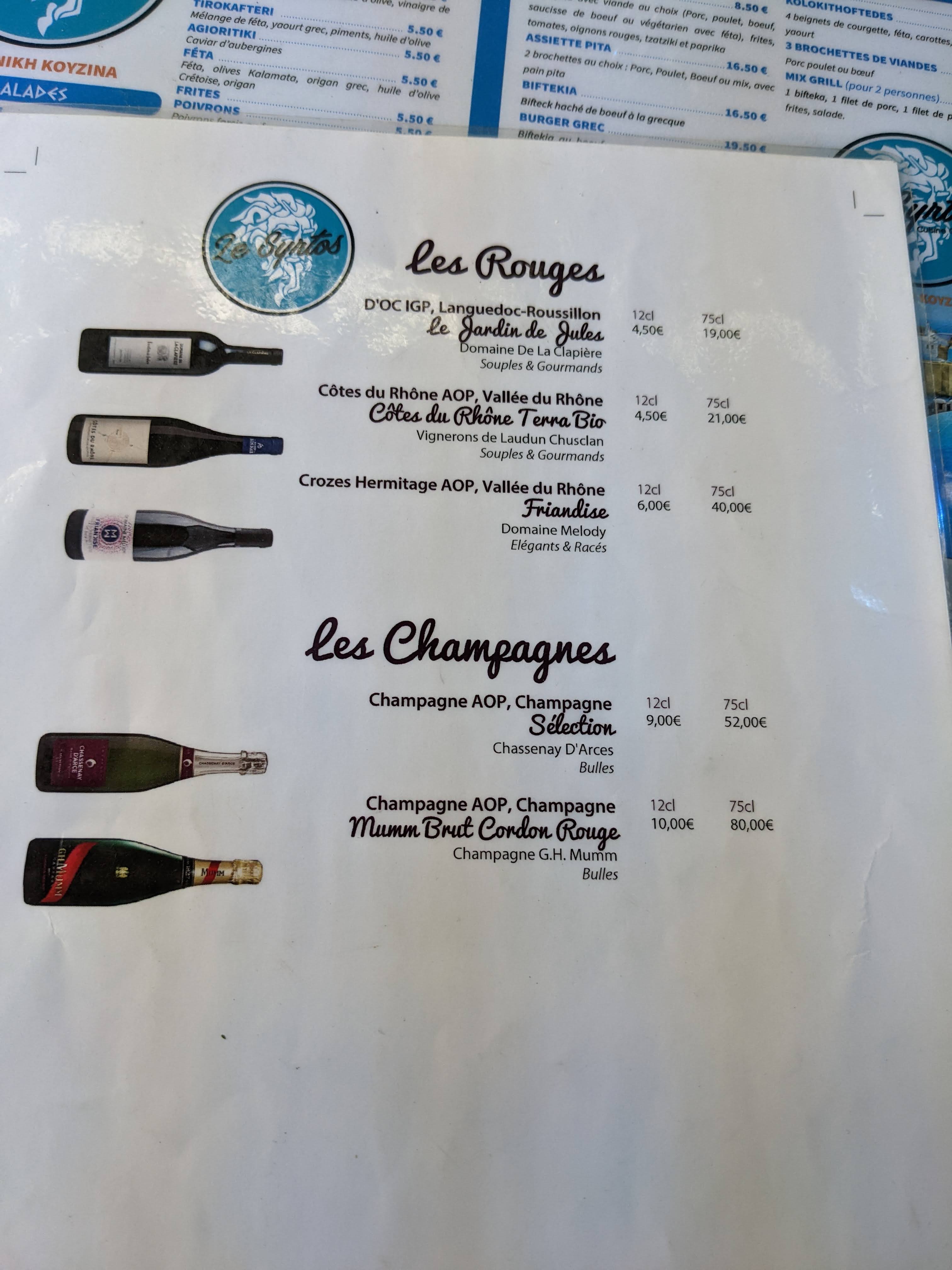 Bonjour Monique Ginisty, Les serveurs et serveuses de notre établissement sont parfaitement qualifiés sur la carte. Merci de demander le patron pour approfondir à son paroxysme les sujets d’œnologie, de restauration et de coutumes grecs. Dans l’attente de vous rencontrer afin d’échanger à ces sujets. Bien à vous. Le gérant.