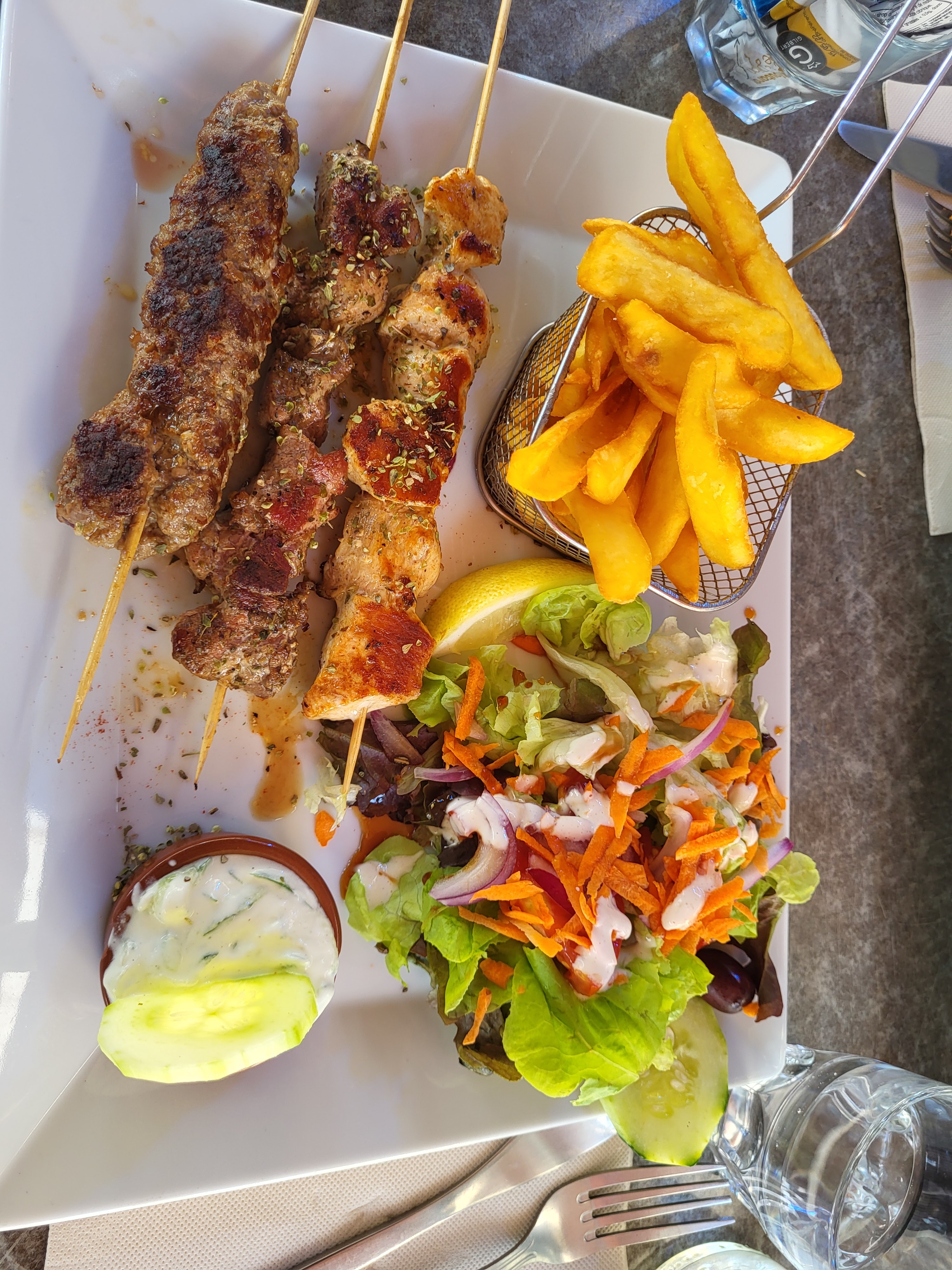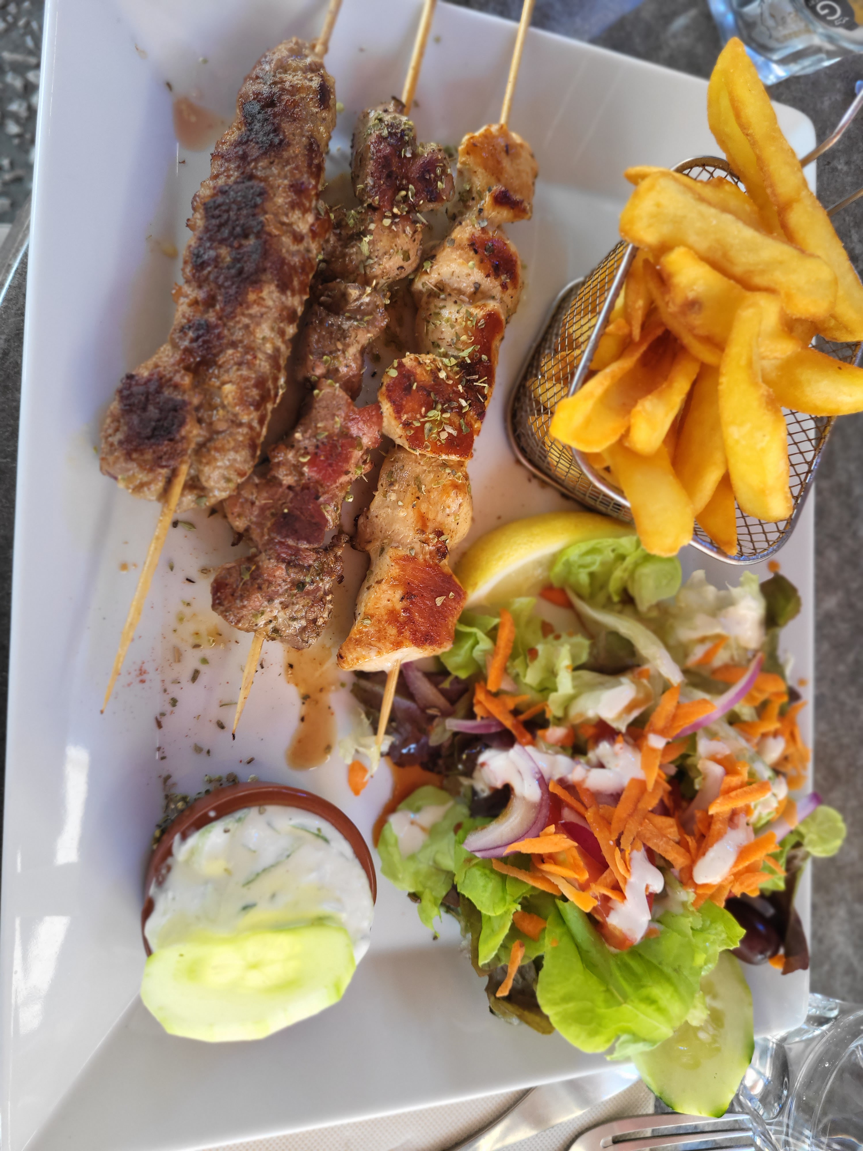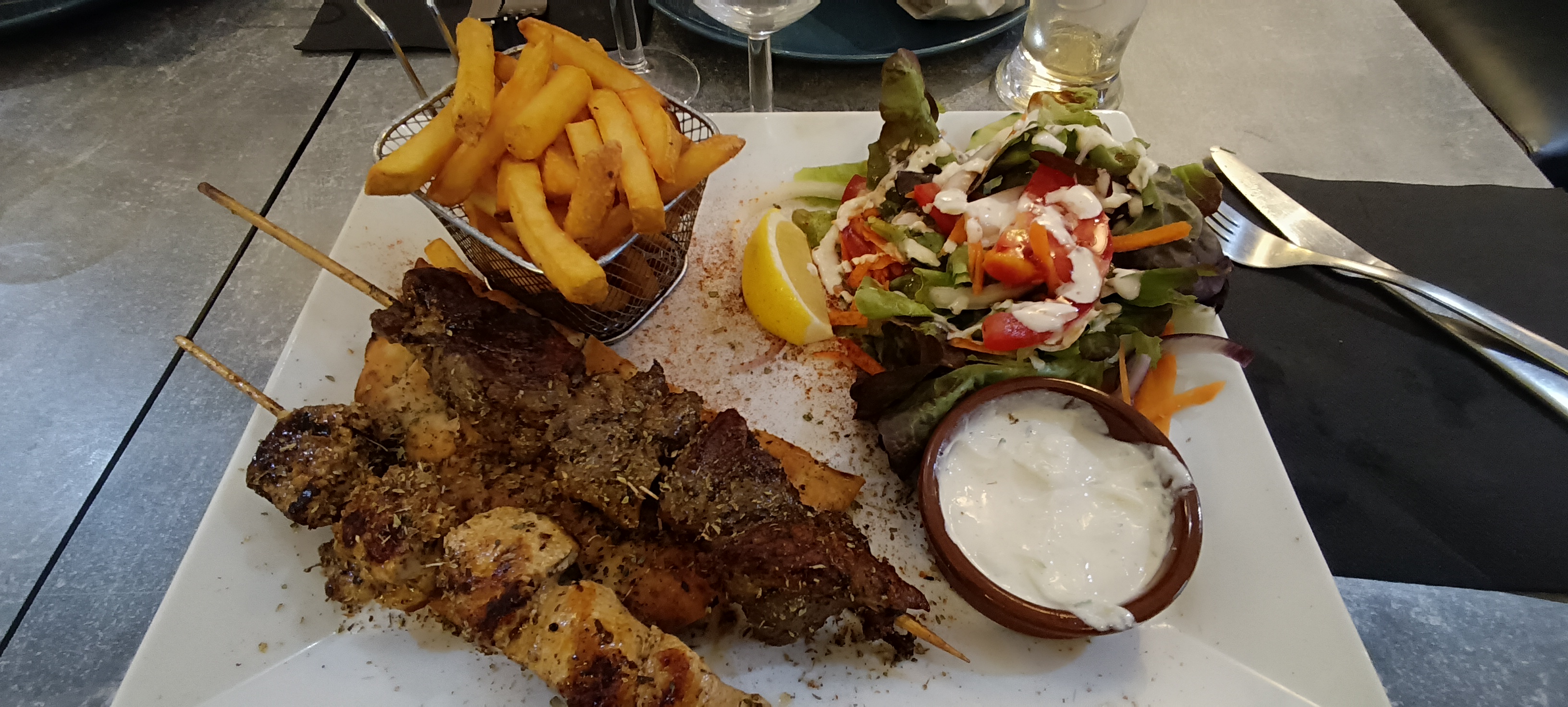 Des brochette pas du tout cuites le cuisinier doit redoubler efforts pour pas perdre de clients dommage,des progrès à faire dans ce restaurant petit,au prix discutable! Restaurant a fuir ! Désolé ☹️