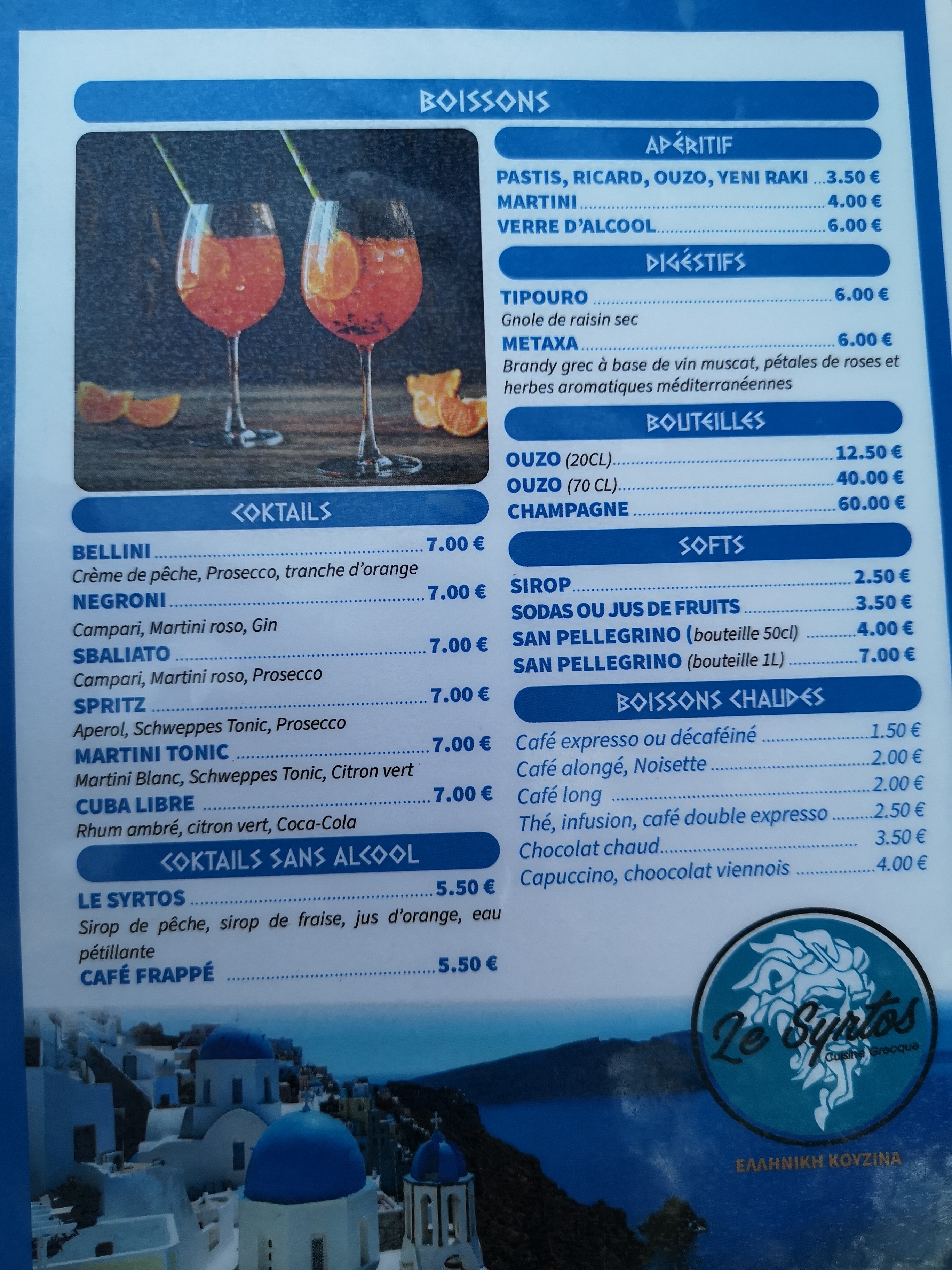 Nous sommes venus dîner au Syrtos pour la première fois ce week end. Nous avons été très bien accueilli, très bien placés. Le restaurant est idéalement situé sur les quais, c’est agréable. La nourriture était DIVINE, & le personnel très arrangeant & compréhensif par rapport à mes allergies alimentaires. Le poulpe était délicieux & chacun des tapas sur la petite planche également ! Nous reviendrons avec grand plaisir.