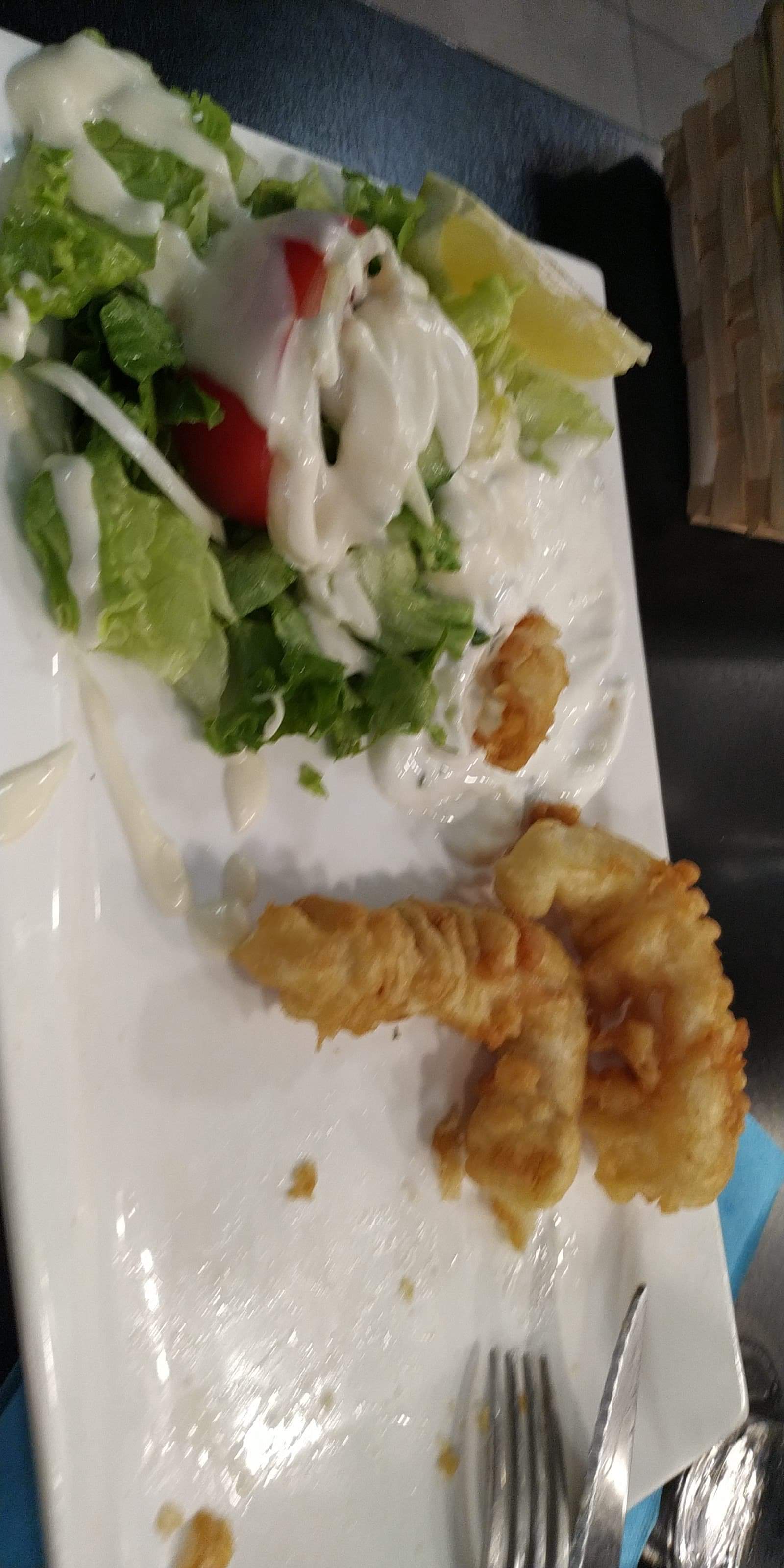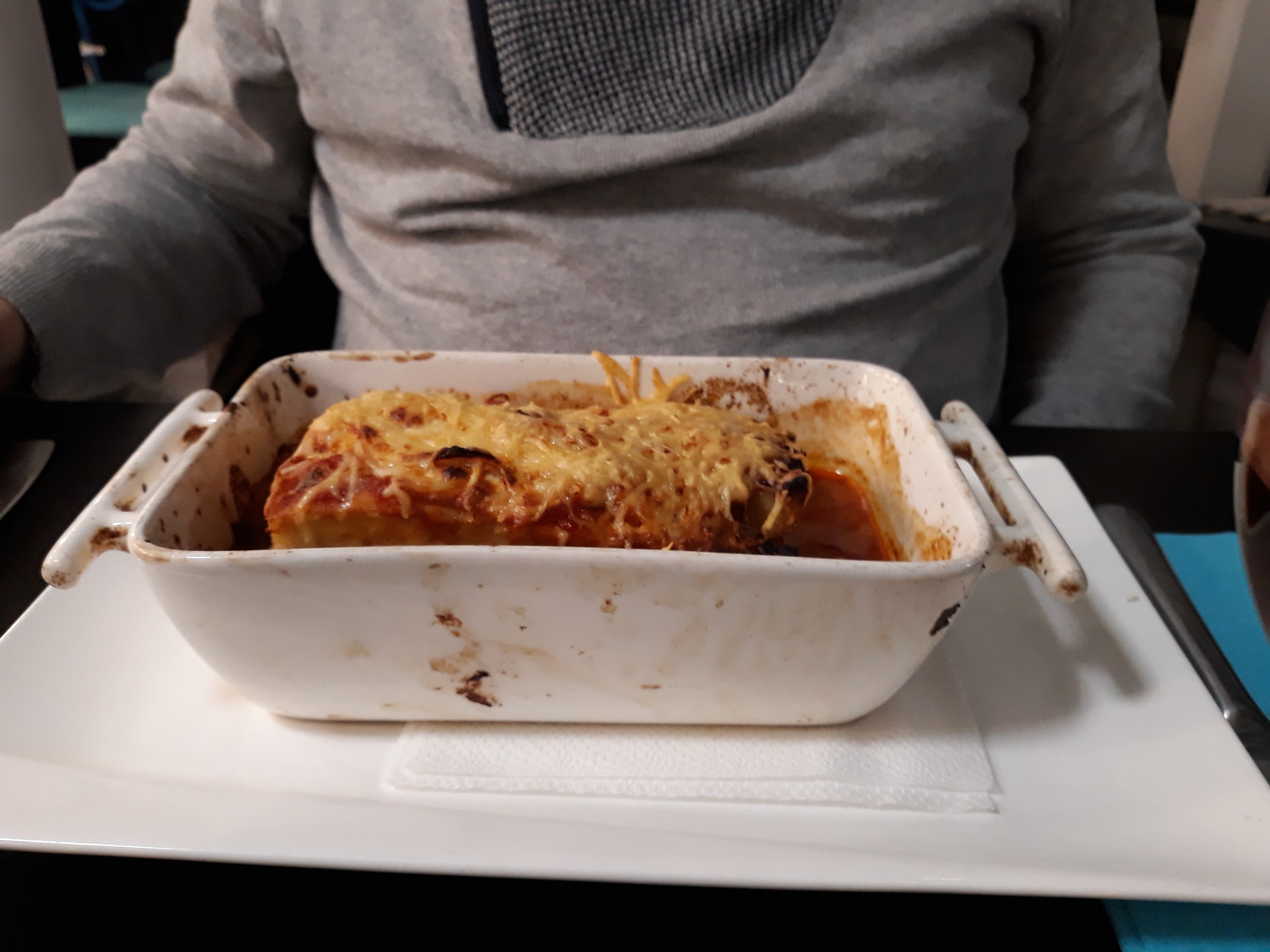 Il fait tres froid dans le restaurant. Il a fallut reclamer les vins et la plaka gambas ce sont des crevettes roses... rabougries ! Surement que les scampi ce sont des crevettes grises... bof en general. On a attendu 50mn pour le plat principal alors qu il y avait pas foule. Et au final, heureusement que j avais des rince doigts dans ma poche !