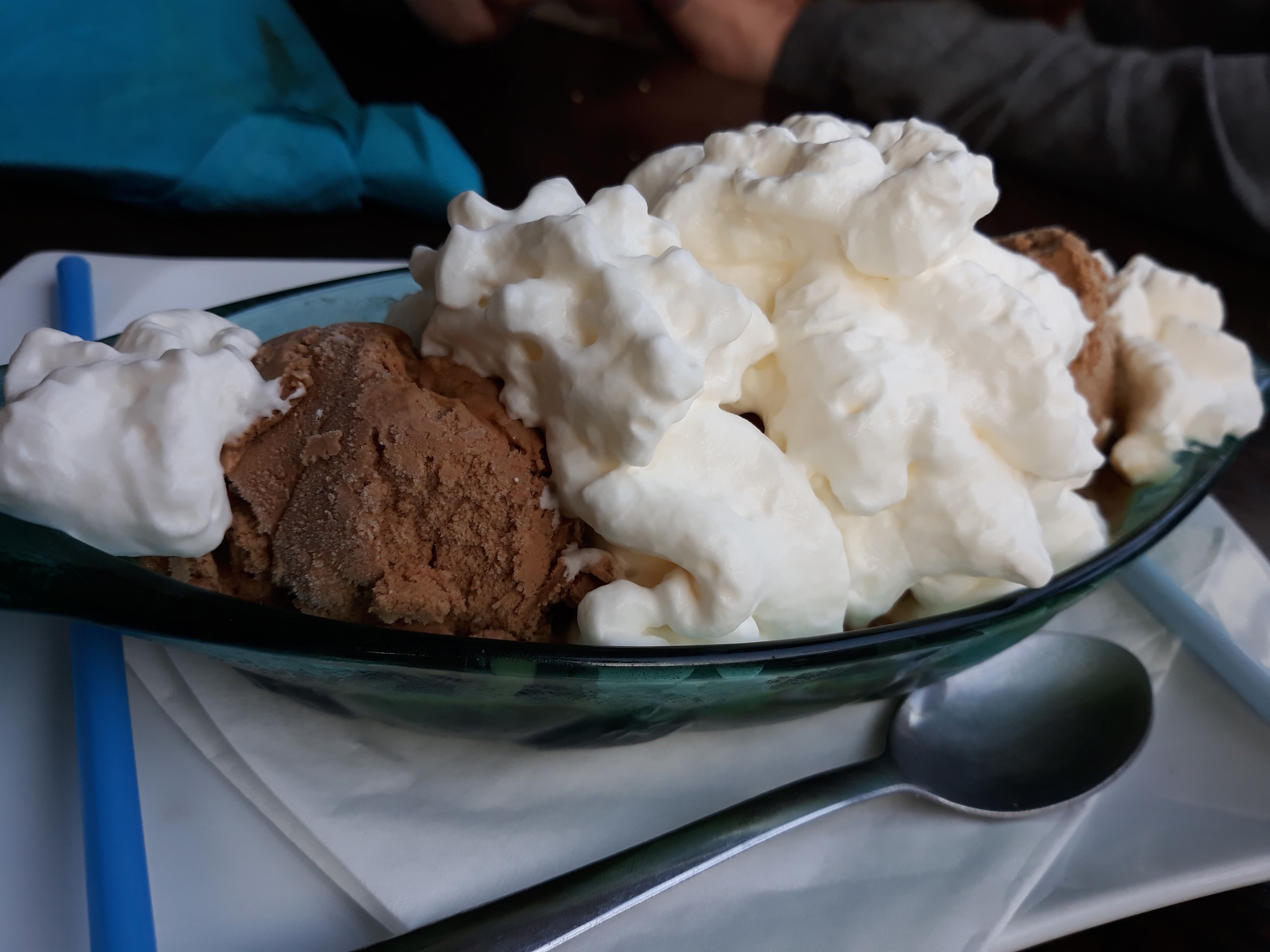 Frites et viandes sèches. Tarif très excessif au regard de la qualité de la prestation. 2 euros pour un supplément chantilly sur une boule de glace pour enfant. 3 euros pour un pierrier 20 cl