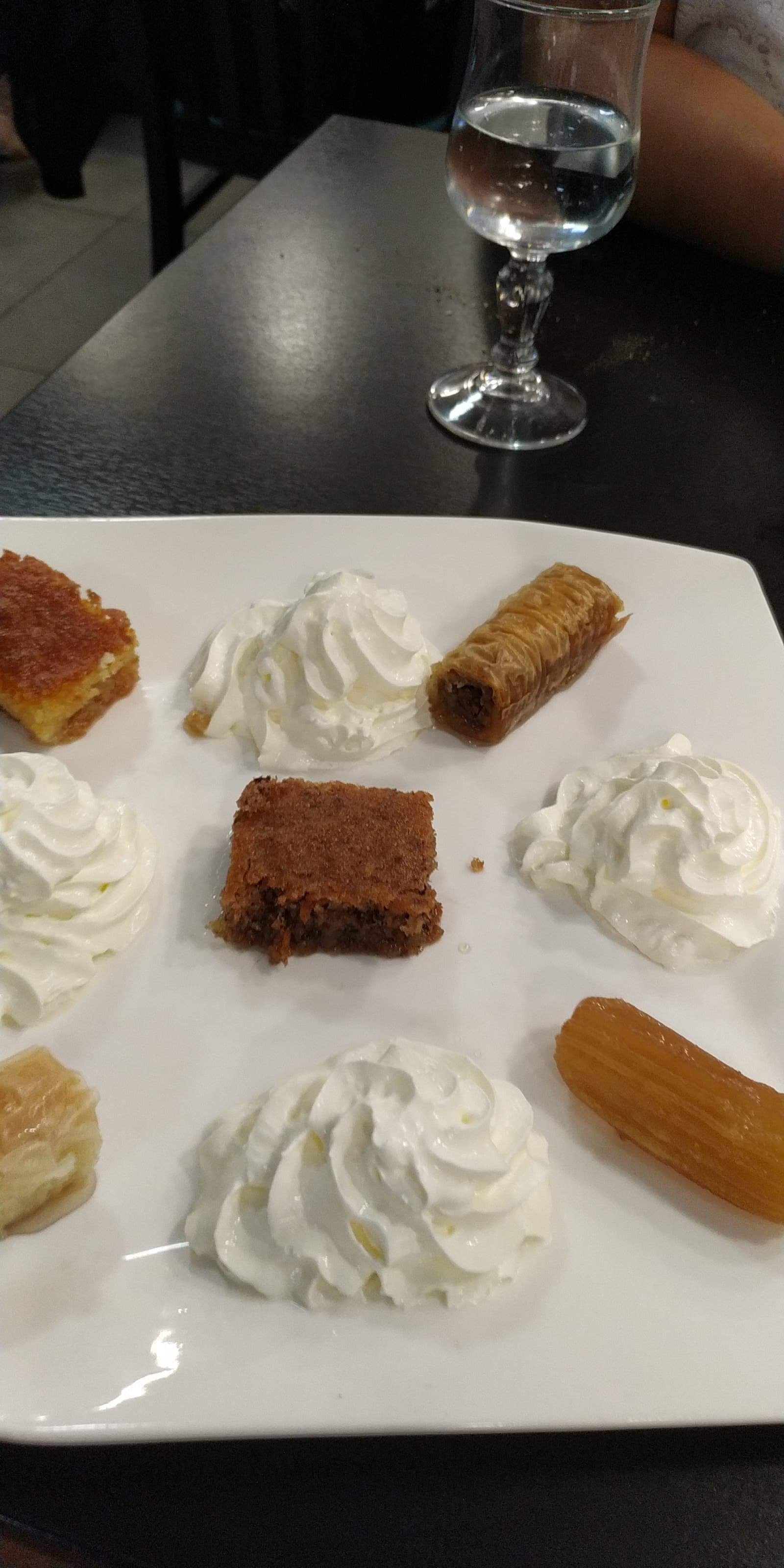 Je me suis régalée avec l'assiette Gyros. Le dessert était sympa aussi, beignets au miel. Déco sympathique mais restaurant très bruyant et peu d'intimité à table.