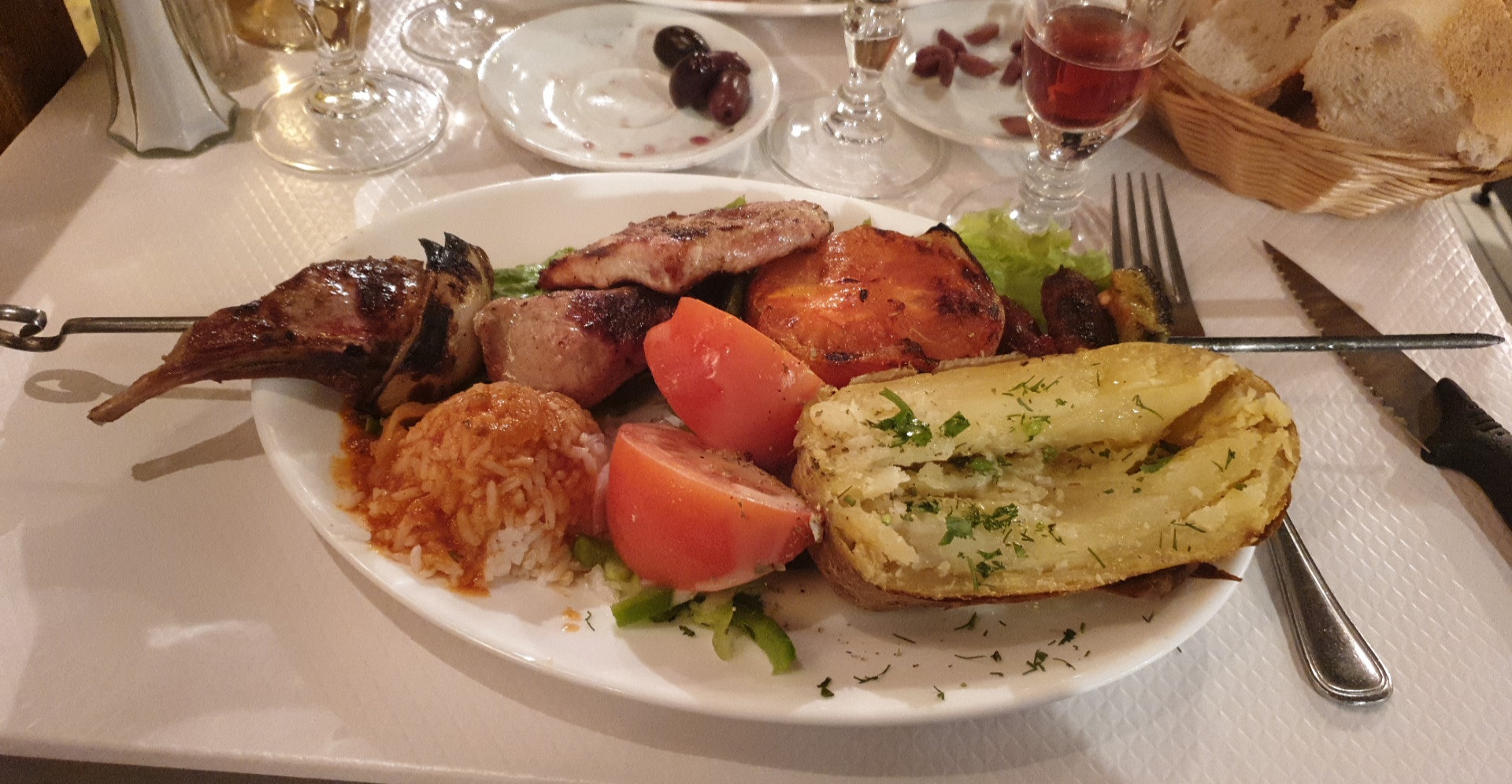 Basique pas de plat réellement élaboré ou mijote comme de l'agneau ou du porcelet, des brochettes basiques. Celle au porc ets bonne